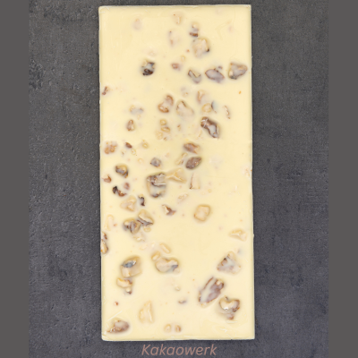 Die Weiße Tafel Walnuss ist der Beweis, dass weiße Schokolade mehr sein kann als süß.